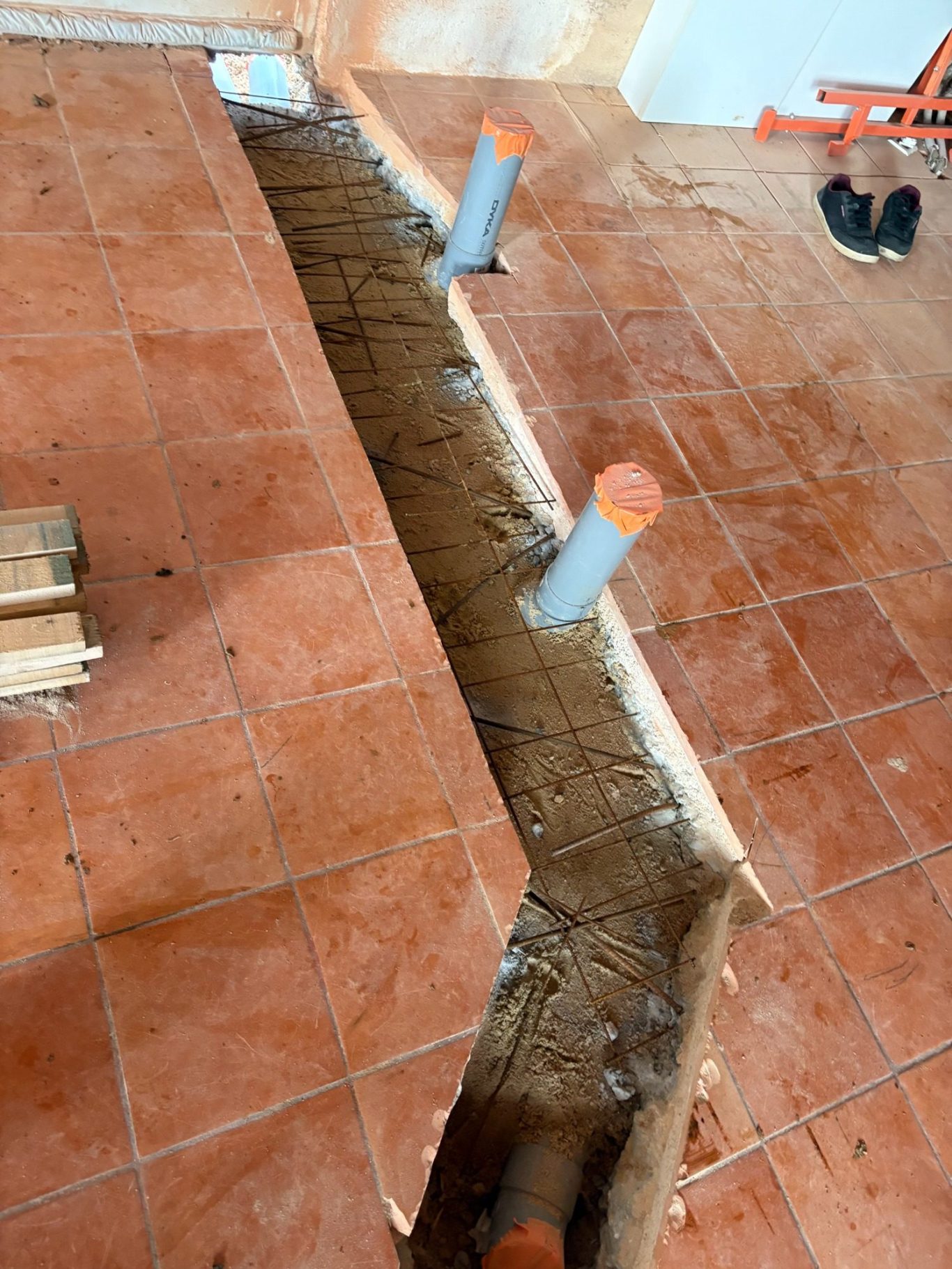 Création de saignées dans les dallages pour le passage de réseaux (eau, électricité, évacuation), avec remise en état soignée.